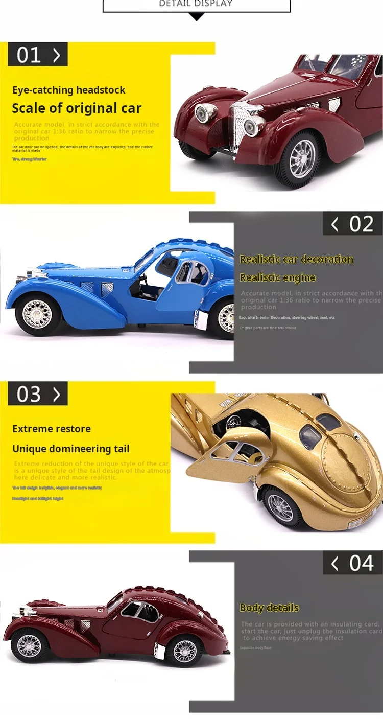 Vehicle Model Super Classic Pull Back Toy Car Educational Collection Door Open Car Model Gift Children Gift Car for Bugatti